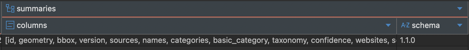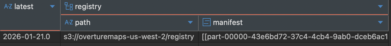 해당 경로에 OvertureMaps data 최신 릴리즈 정보가 포함되어 있다. DuckDB에서 조회를 해보면