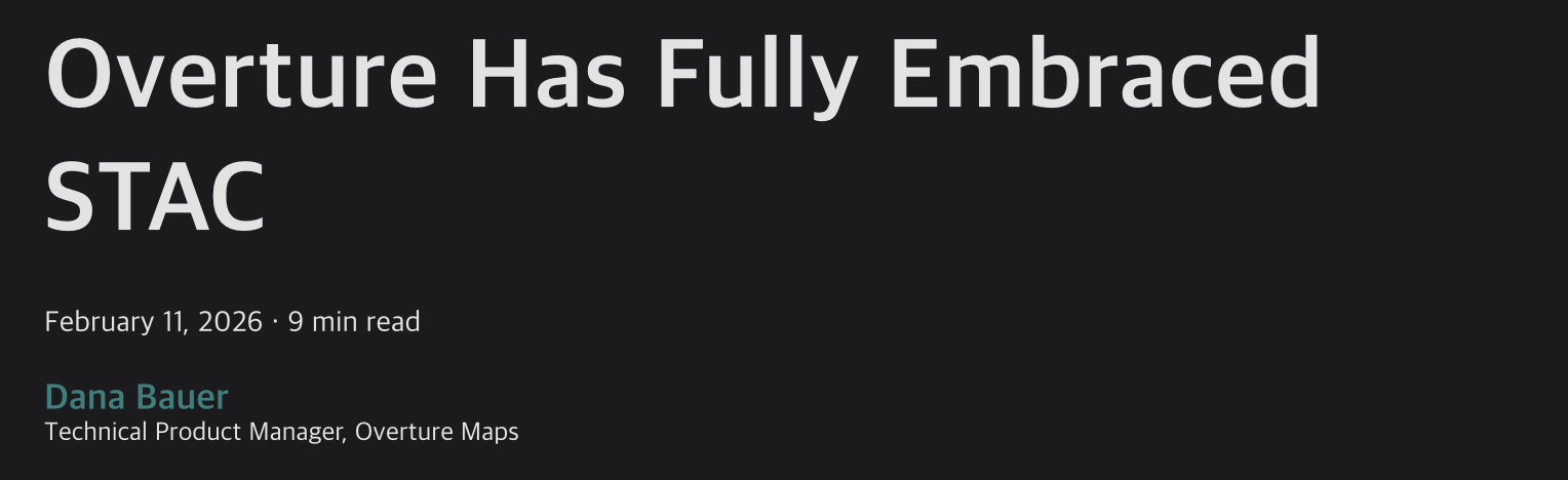 OvertureMaps가 STAC을 단순 릴리즈 산출물이 아니라, 운영 인프라의 핵심 구조로 채택했다는 발표다.
