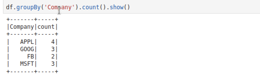 df.groupBy('Company').count().show()