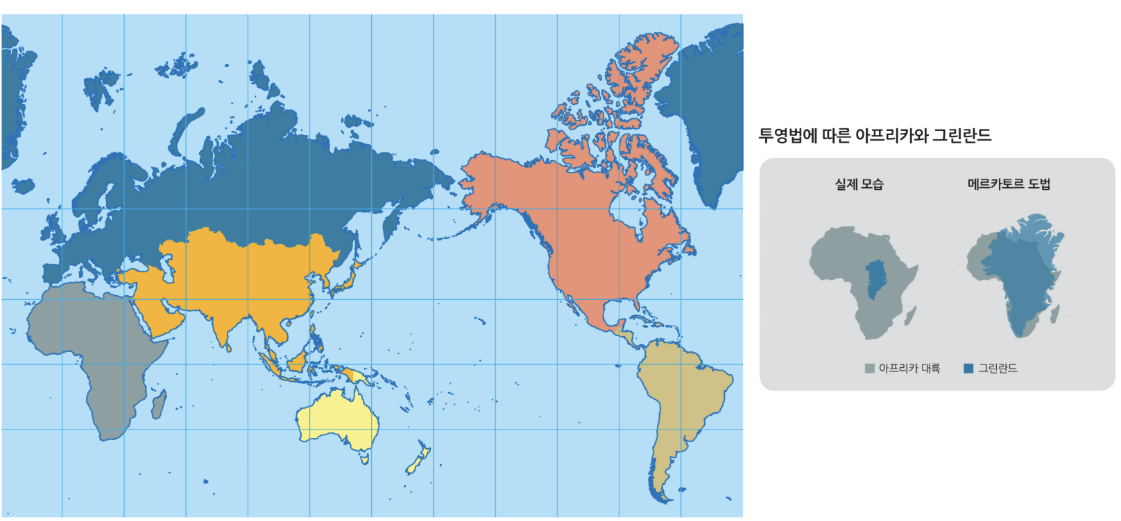 하지만 거리, 방향, 모양, 면적 등이 모두 정확하게 반영된 지도를 만드는 것은 불가능하다.